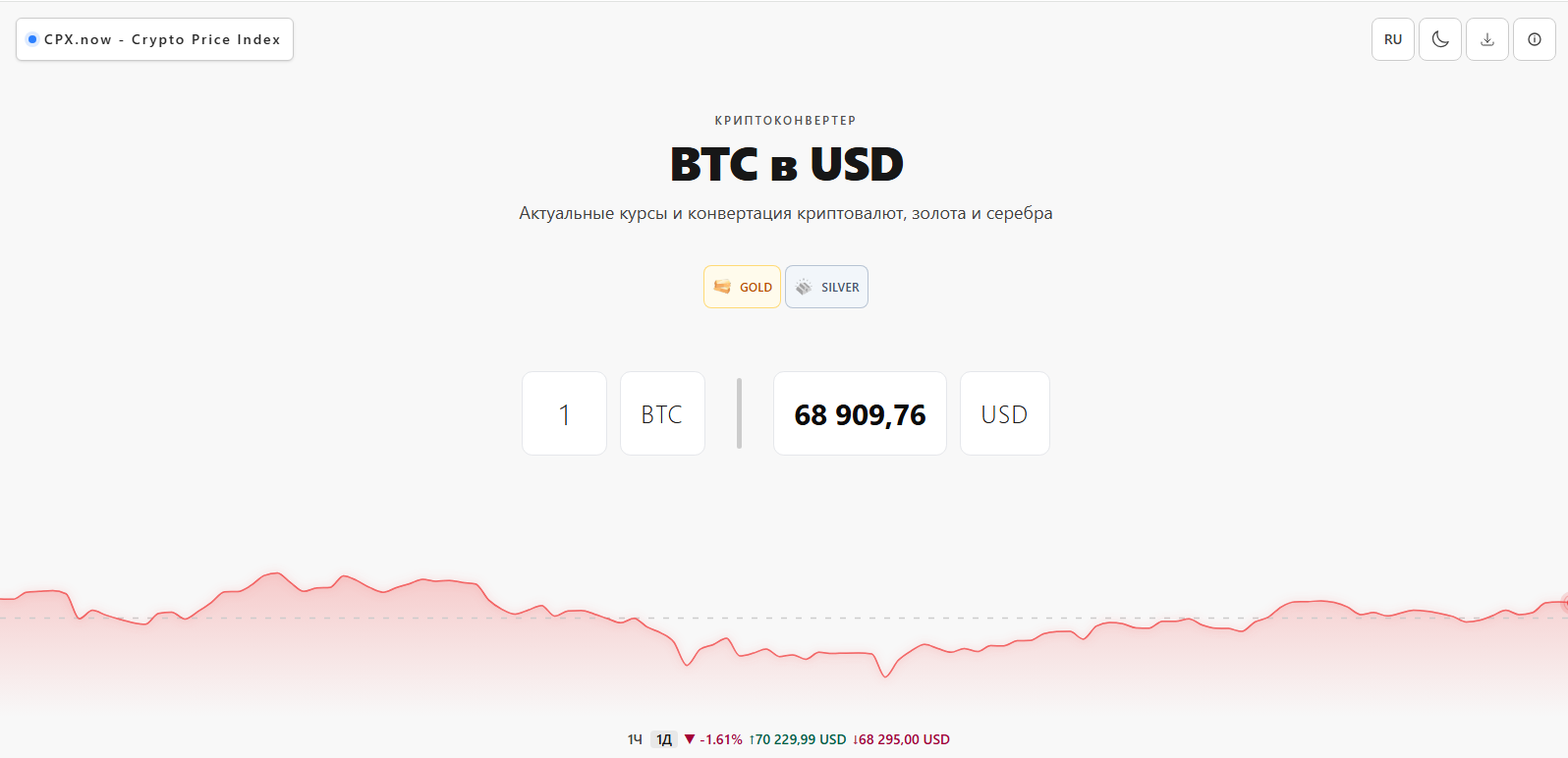 Узнать курс криптовалюты онлайн звучит просто — но большинство инструментов перегружены рекламой, требуют регистрацию или грузят половину торговой платформы ради одной цифры. Нам была нужна страница, которая открывается мгновенно, сразу показывает курс и не отвлекает ни на что лишнее. CPX.NOW — именно такой инструмент.