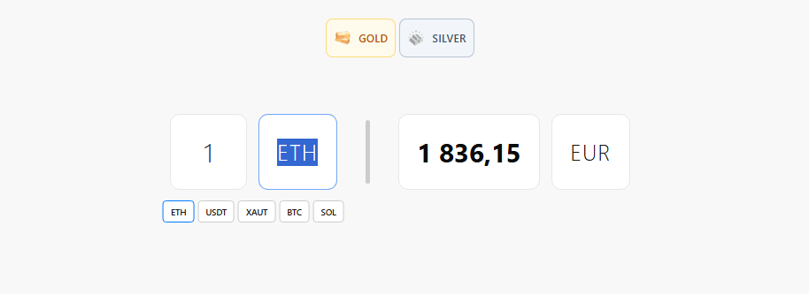 Вводите любую сумму — в крипте или в фиате — и мгновенно получаете эквивалент в нужной валюте. Курс агрегируется с Binance, Kraken и CoinGecko и отображается как средневзвешенная цена по объёму торгов (VWAP) — честный рыночный показатель, а не цифра с одной биржи. Всё обновляется автоматически каждую минуту, без перезагрузки страницы.