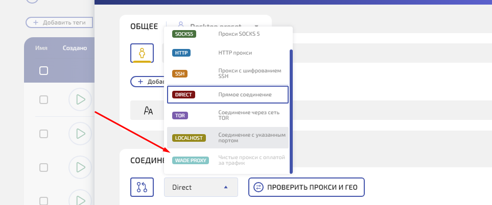 Типы соединений прокси в антидетект-браузере WADE X
