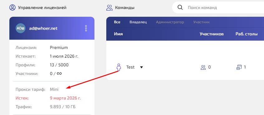 Кнопка покупки прокси находится под кнопкой продления подписки на антидетект-браузер.